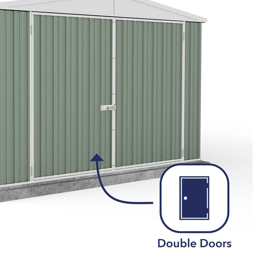 Absco 10 x 15 Utility Metal Workshop (3m x 4.48m) Pale Eucalyptus - Anchor Kit Included