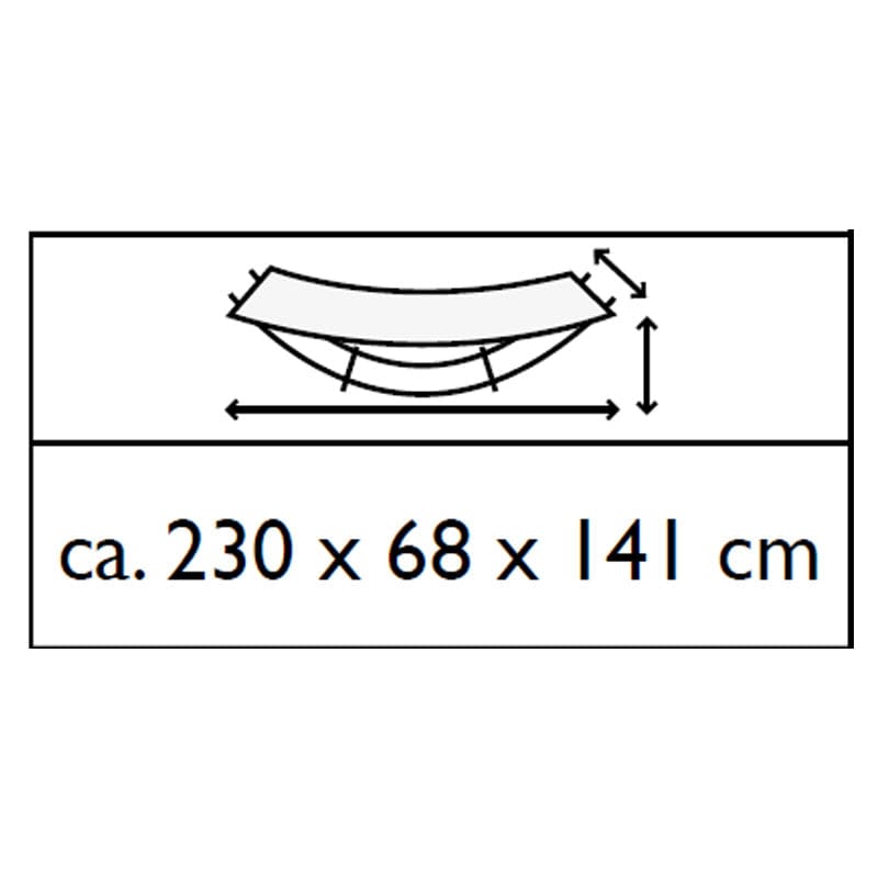 The wooden components of the Lounge Bed are handcrafted from weatherproof-treated spruce. High-quality layered gluing ensures maximum stability and safety, whle all fittings are made of rustproof galvanised metal. All materials are sourced from Europe and processed in an environmentally friendly way.