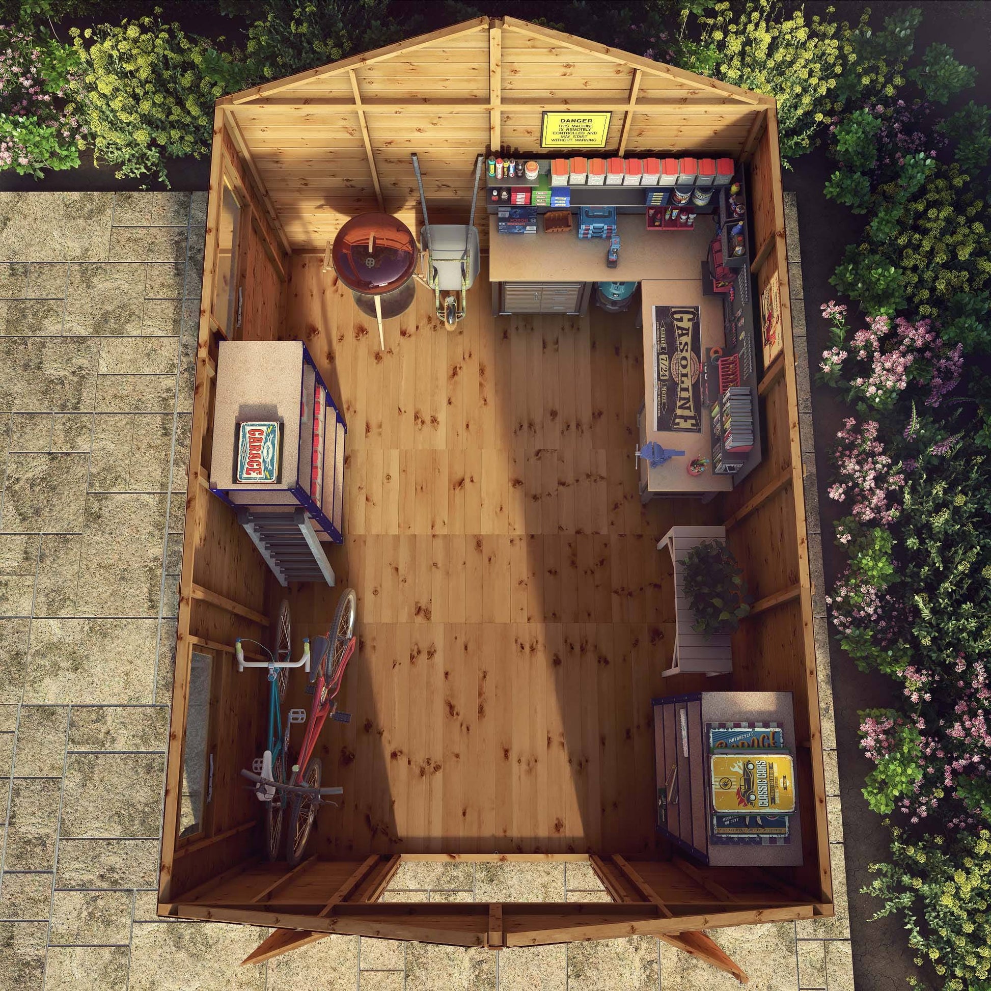 To ensure stability and longevity, it is recommended that this workshop is installed on a firm, level base such as a poured concrete base, wooden frame, or paving slabs.