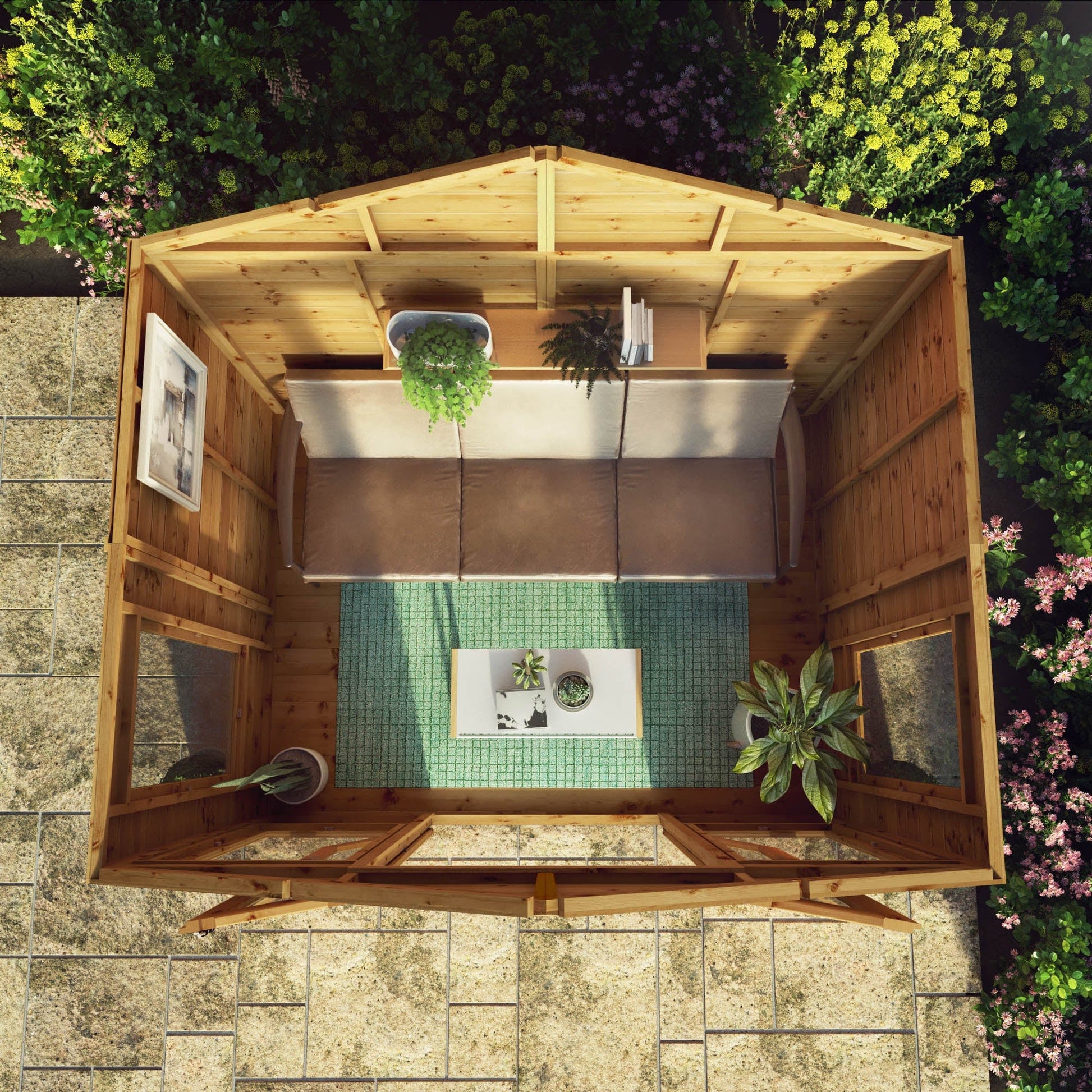 Built with interlocking tongue and groove boards, the structure is strong, hard-wearing, and weather-resistant. The shiplap profile ensures durability, with a protective lip to keep the interior dry and secure. Internally supported by sturdy wooden framing, this summerhouse is made to last, offering a solid and stable structure.