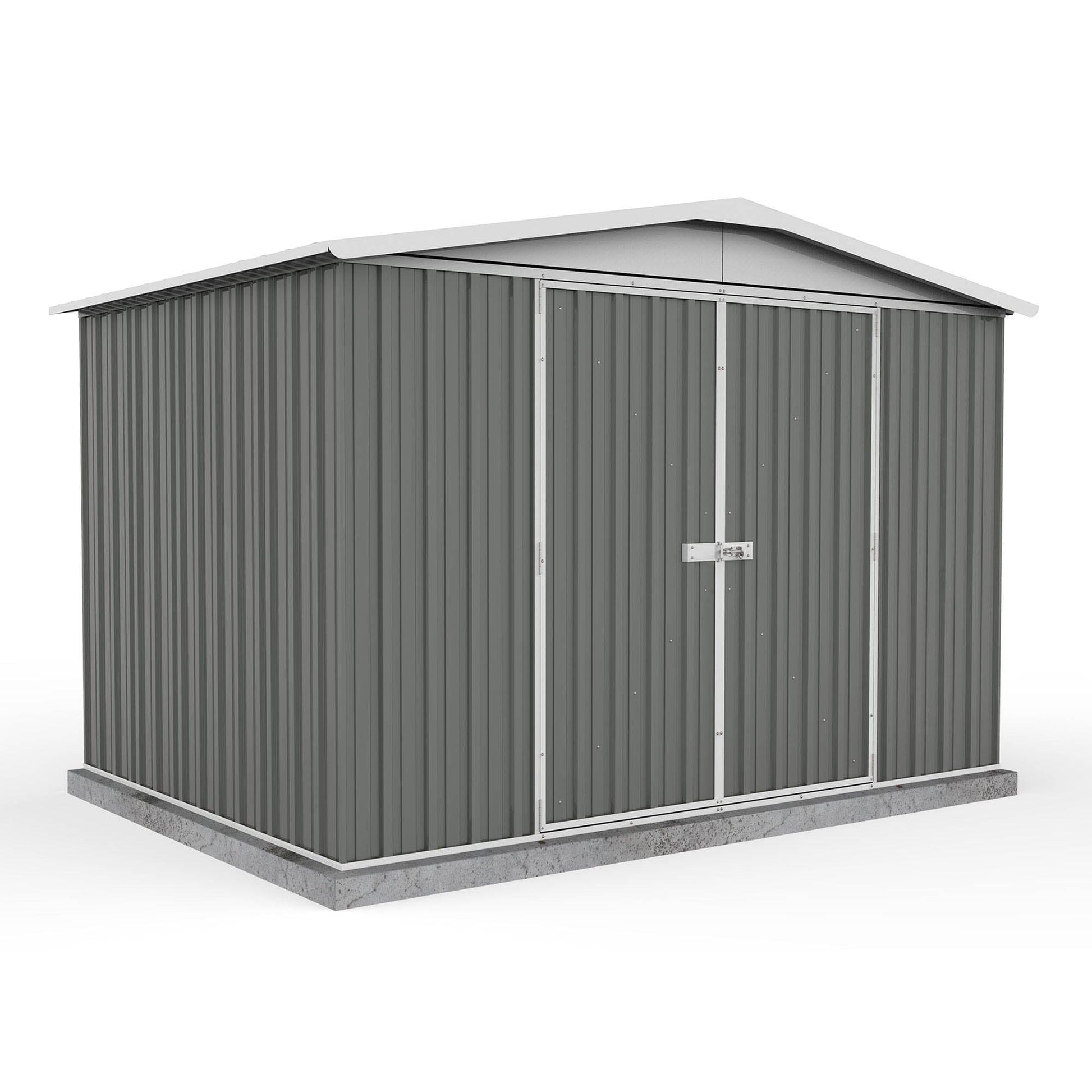 The Absco Regent 10 x 7 Metal Shed (3m x 2.18m) Woodland Grey is the perfect low-maintenance storage solution for any garden. Built from robust Bluescope steel and finished in a sleek Woodland Grey, this shed is designed to withstand harsh weather conditions and resist rust for years to come. Featuring the Snap-Tite assembly system, this shed is easy to construct, while its windowless design ensures security for valuable items. Its apex roof design allows for efficient water drainage and provides additional internal height, making it ideal for storing larger garden tools, equipment, or bicycles. An Anchor is Kit Included with this product.