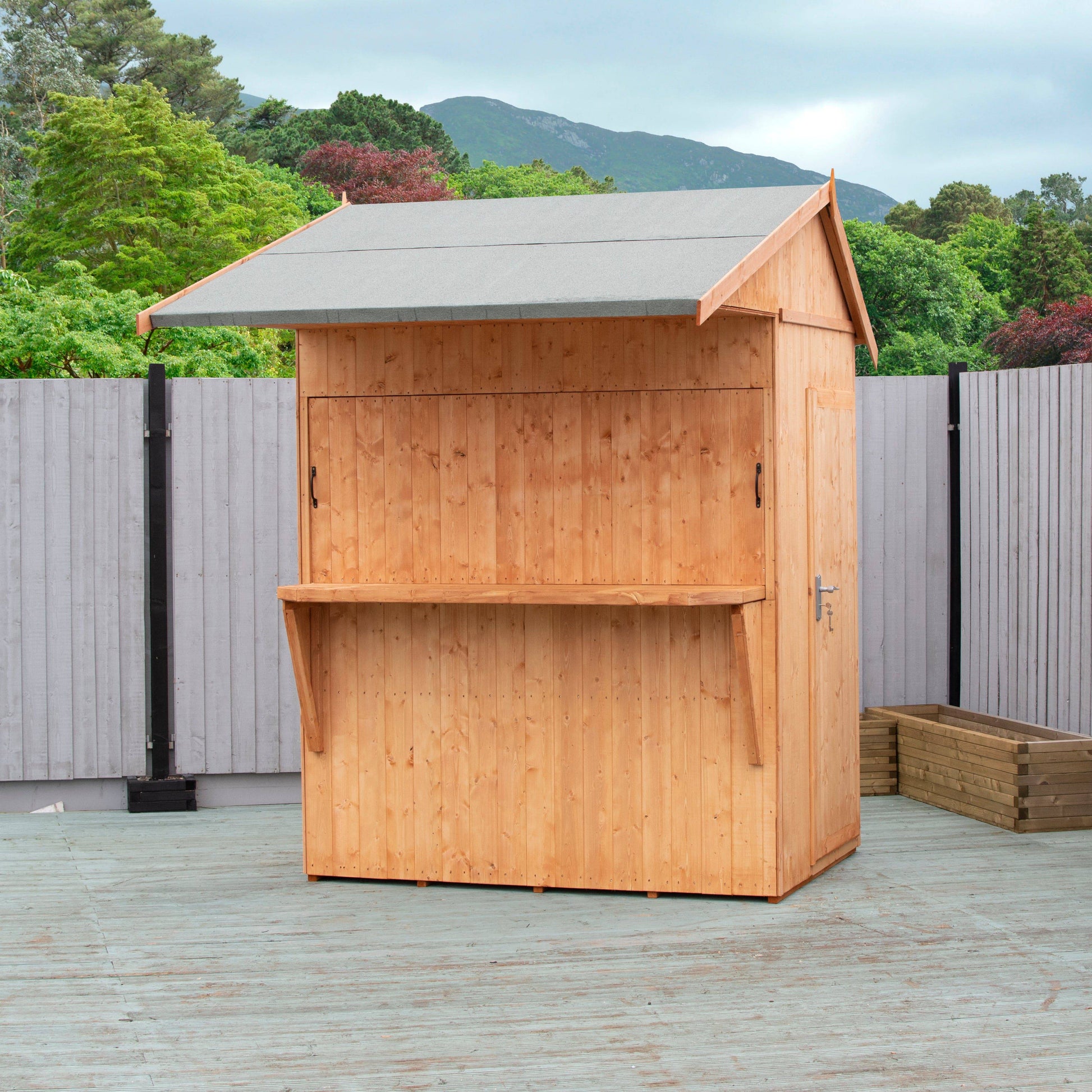 The Shire 6x4 Apex Garden Bar is the ultimate addition for enhancing your garden's entertainment space all year round. With its classic apex roof and sturdy timber design, this versatile bar is perfect for both summer gatherings and cosy autumn get-togethers. Its pressure-treated timber construction ensures it withstands all weather conditions, offering a reliable and attractive focal point in your garden.