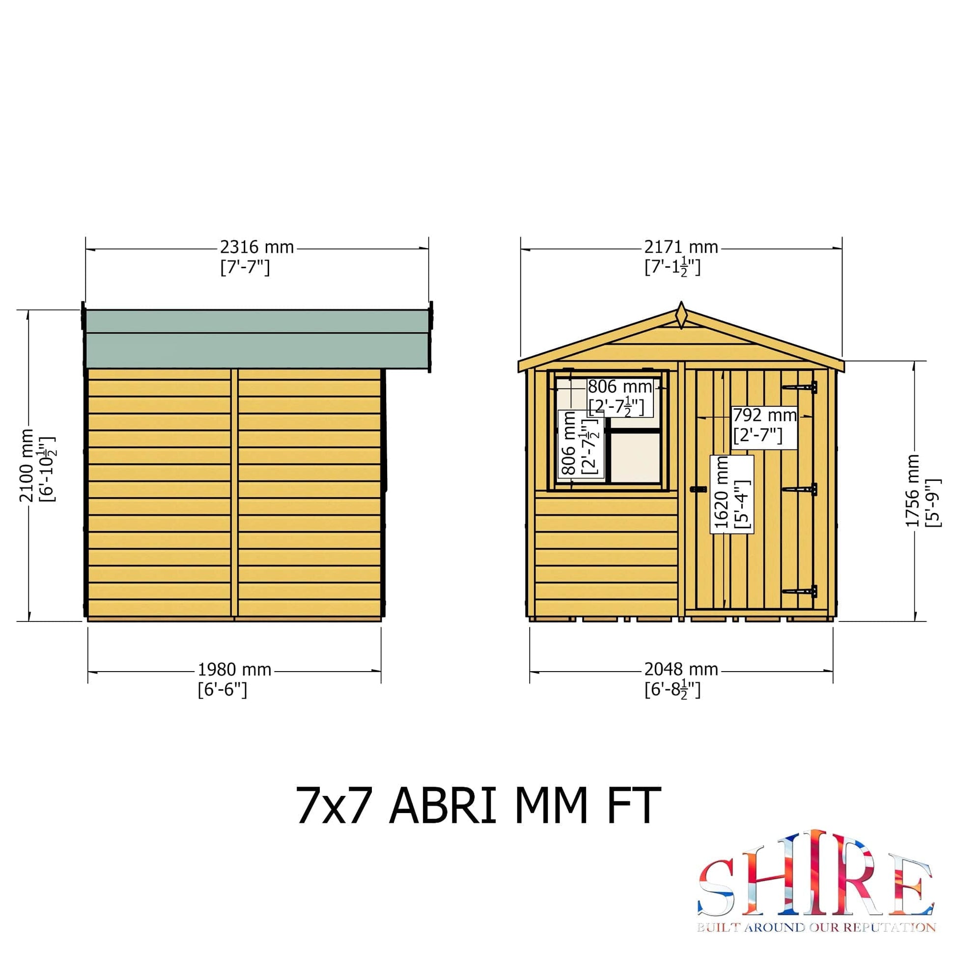 The Shire Abri Apex Shed (7x7) offers a blend of functionality and charm, making it an ideal addition to any garden. Built with high-quality timber, this shed provides secure storage for tools, bicycles, and outdoor equipment while maintaining an attractive appearance. Its traditional apex roof design ensures excellent water runoff and increased headroom, making it a practical and stylish choice for both storage and gardening activities. The shed also features a single door and a window, ensuring both accessibility and natural light.