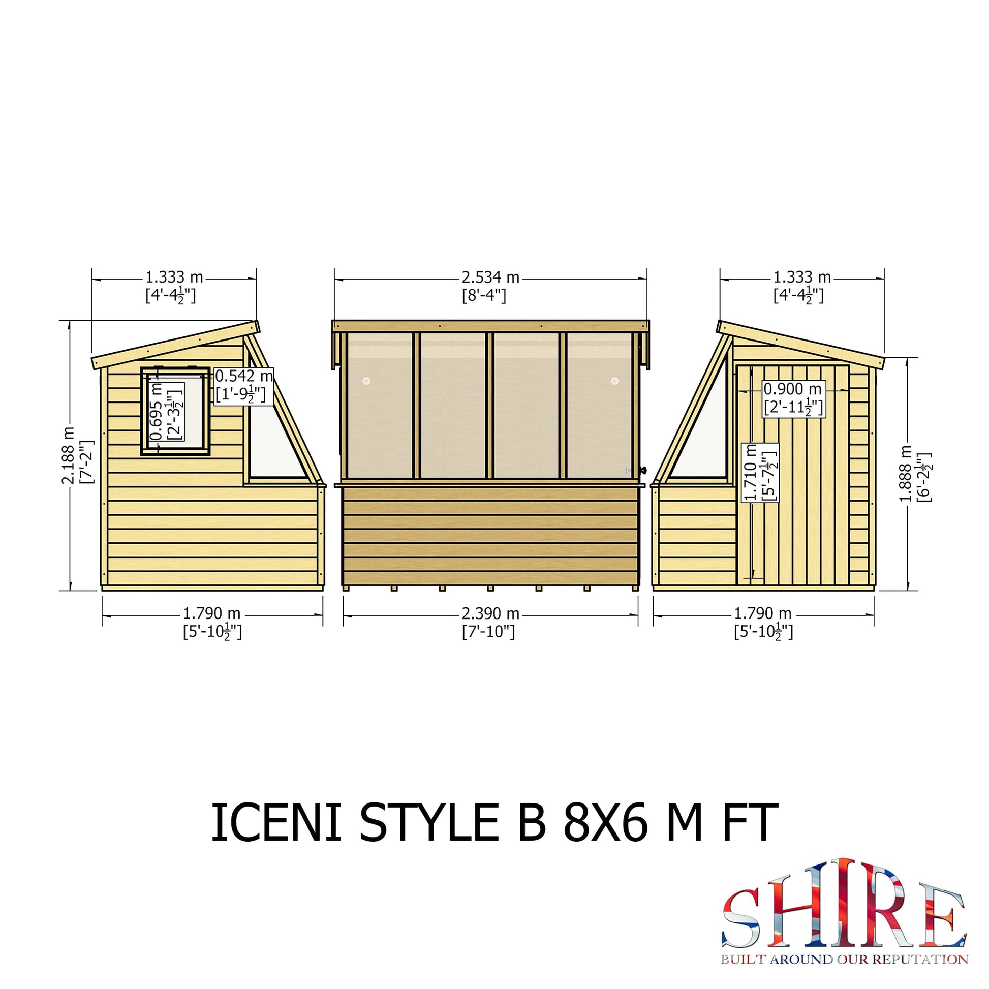 The Shire Iceni 8x6 Potting Shed is the perfect blend of a greenhouse and a traditional shed, offering you an ideal space for both storage and gardening. Made from high-quality shiplap cladding, this potting shed features large windows to maximise sunlight, ensuring your plants thrive. The angled roof design adds to its aesthetic appeal while enhancing its functionality by directing rainwater runoff. The shed’s robust timber structure is pressure treated, providing long-lasting durability and protection against rot and decay, making it an ideal choice for year-round use.