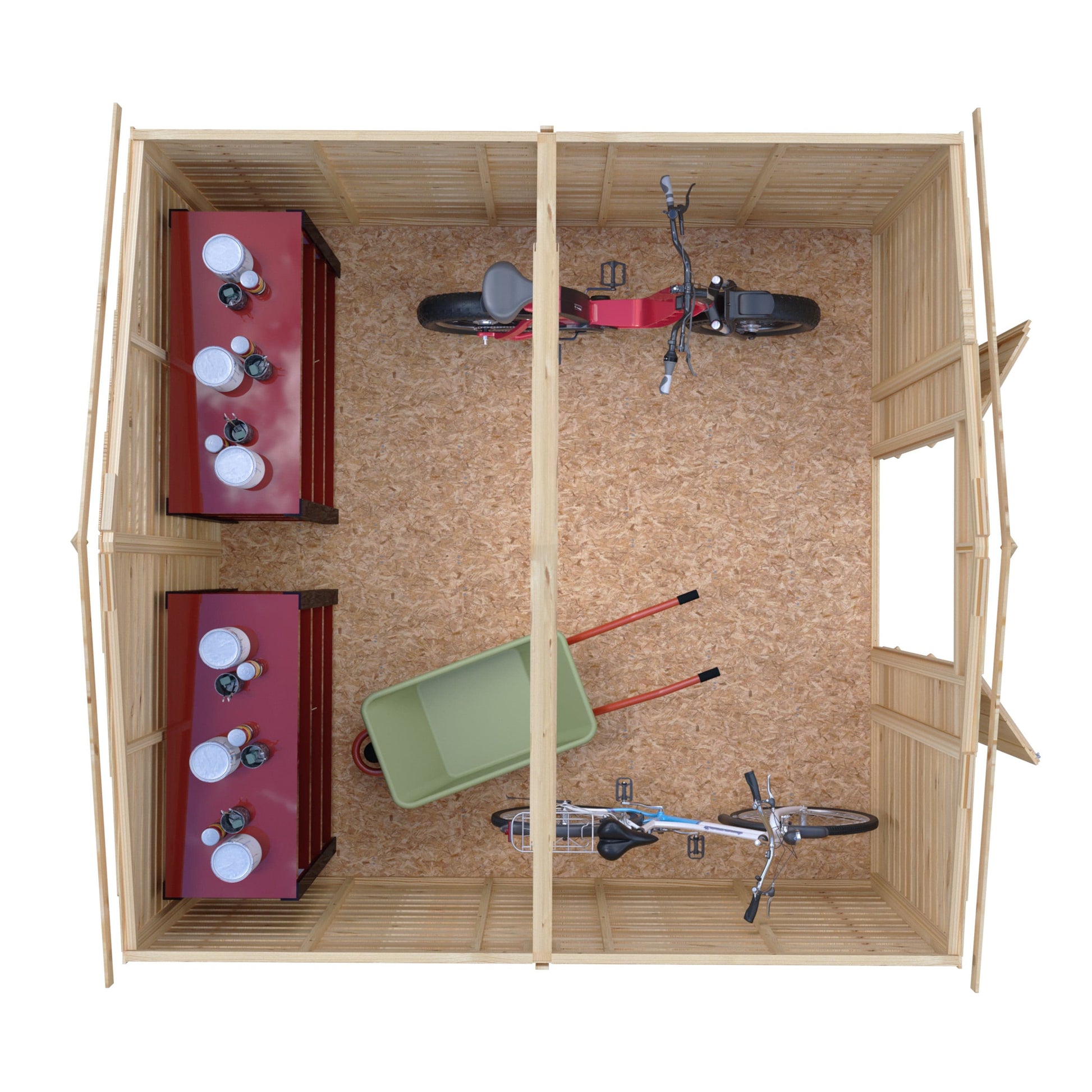 Double Door Access: The wide double doors (0.860 m / 2'-10") allow for easy entry, making it convenient to move larger items like lawnmowers and garden furniture in and out of the shed.