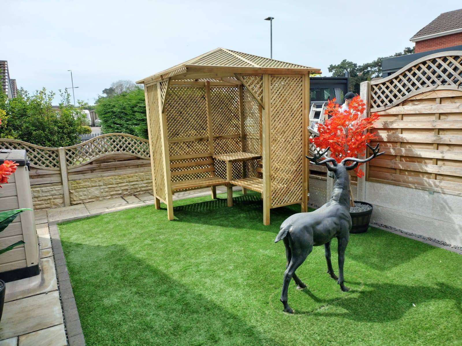 - Corner-Fitting Design: The triangular shape allows the arbour to fit neatly into any garden corner, maximising your outdoor space while providing a comfortable and sheltered seating area.