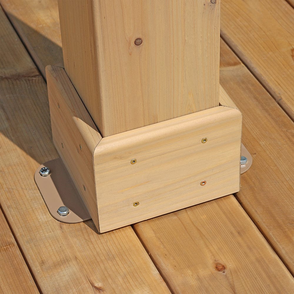 The Yardistry Meridian Gazebo 10ft x 10ft (3m x 3m) is a stylish and functional addition to any outdoor space. Constructed from 100% premium cedar lumber and finished in a natural cedar stain, it offers both durability and aesthetic appeal. The brown aluminium roof provides reliable protection from the elements, ensuring your outdoor gatherings can continue regardless of the weather. The gazebo features 6” x 6” posts with heavy corner gussets, enhancing its stability and strength. All wood is pre-cut, pre-drilled, and pre-stained for easy assembly, and the kit includes all necessary hardware and metal components. An installation service is available for those seeking a hassle-free setup.