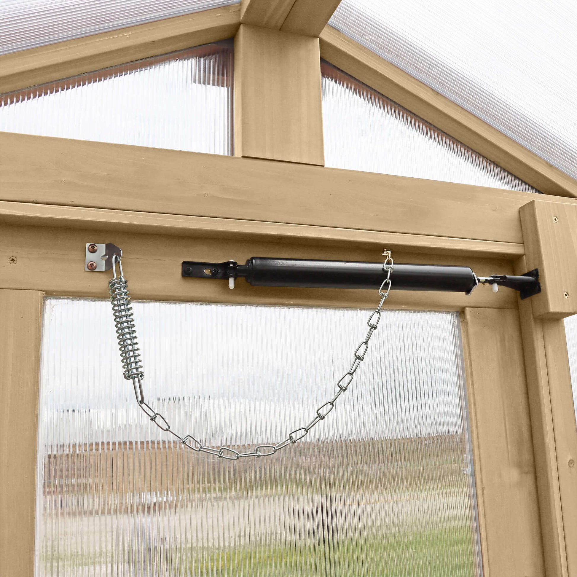 - Secure Cedar Door – Features a latch and quick-hold closer, keeping your greenhouse accessible and secure.