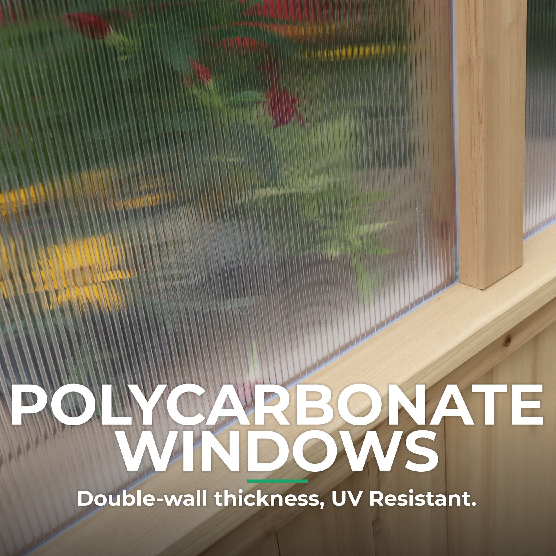 Double-Wall Polycarbonate Windows – Robust and durable, providing better insulation than single-wall polycarbonate, and delivering superior UV protection and resistance to fading.
